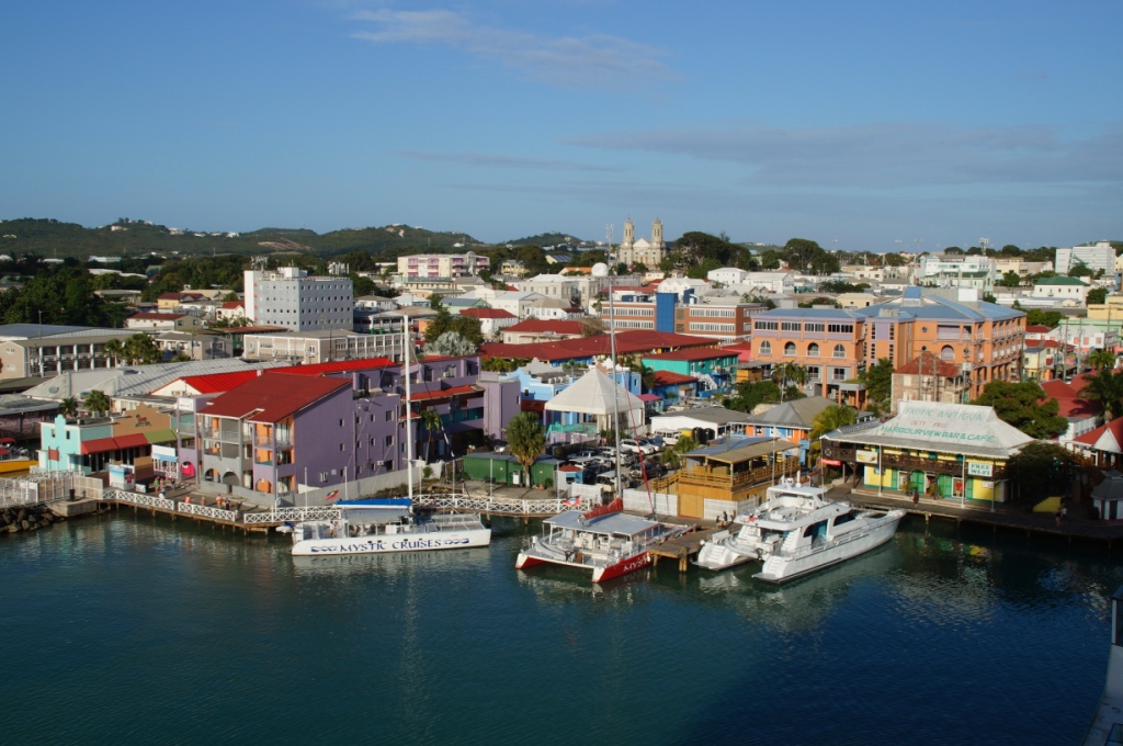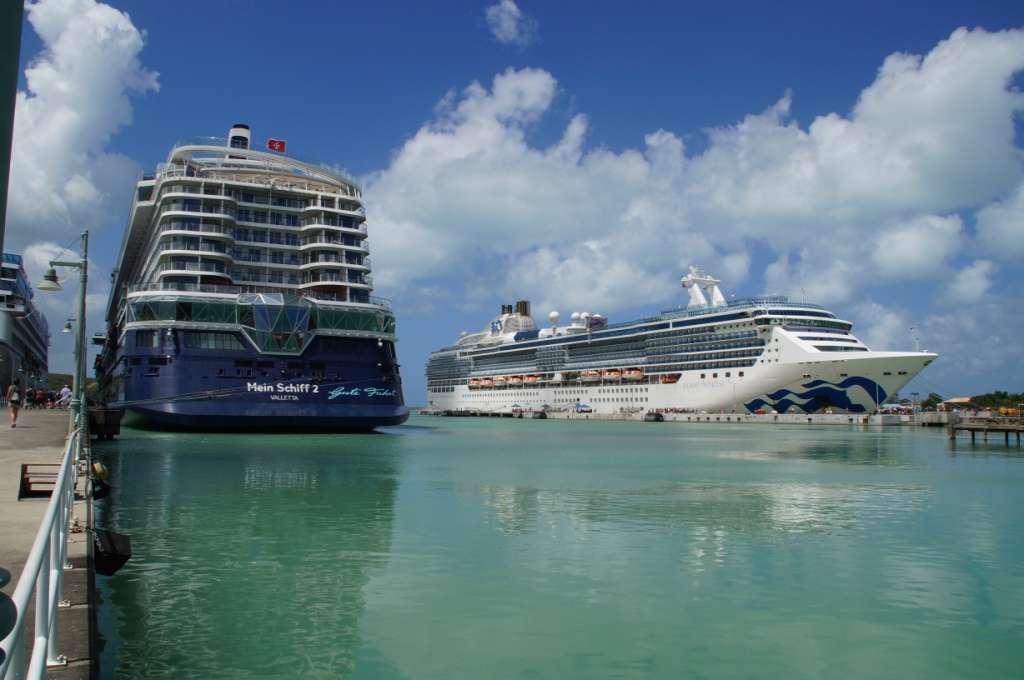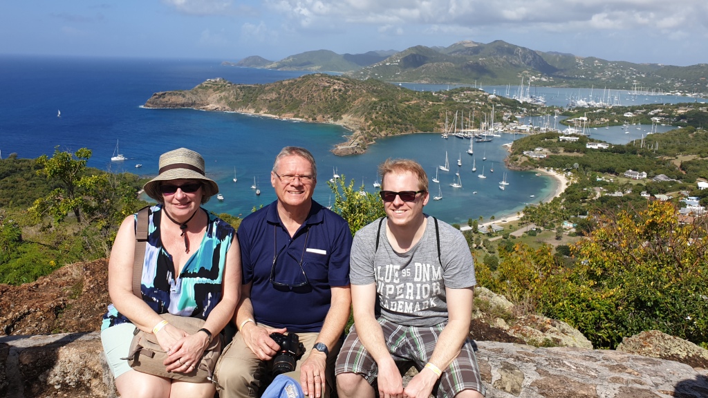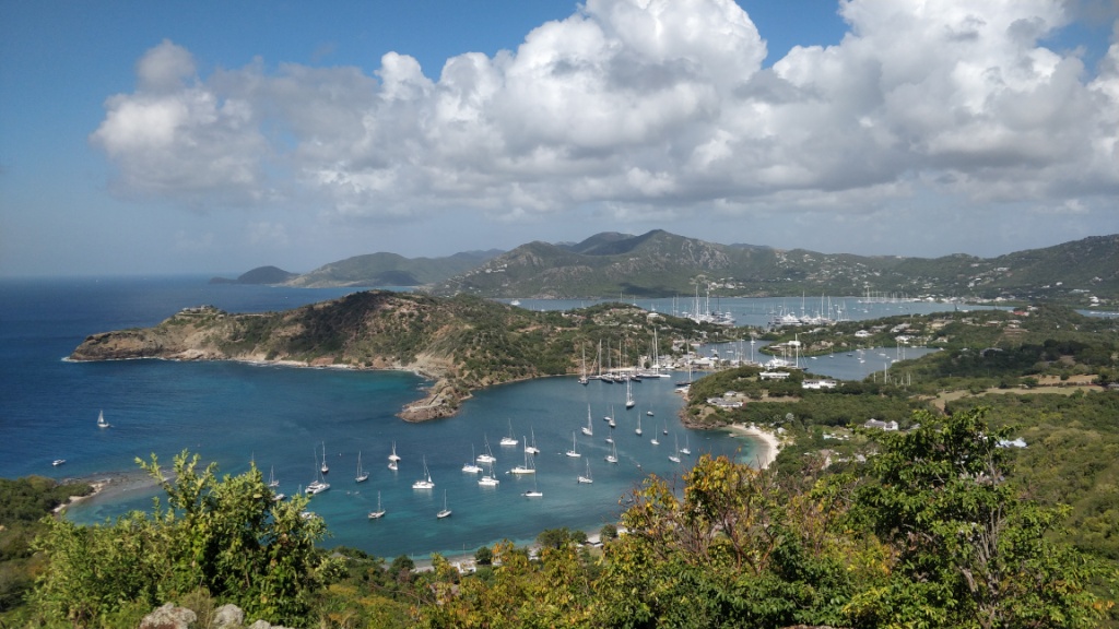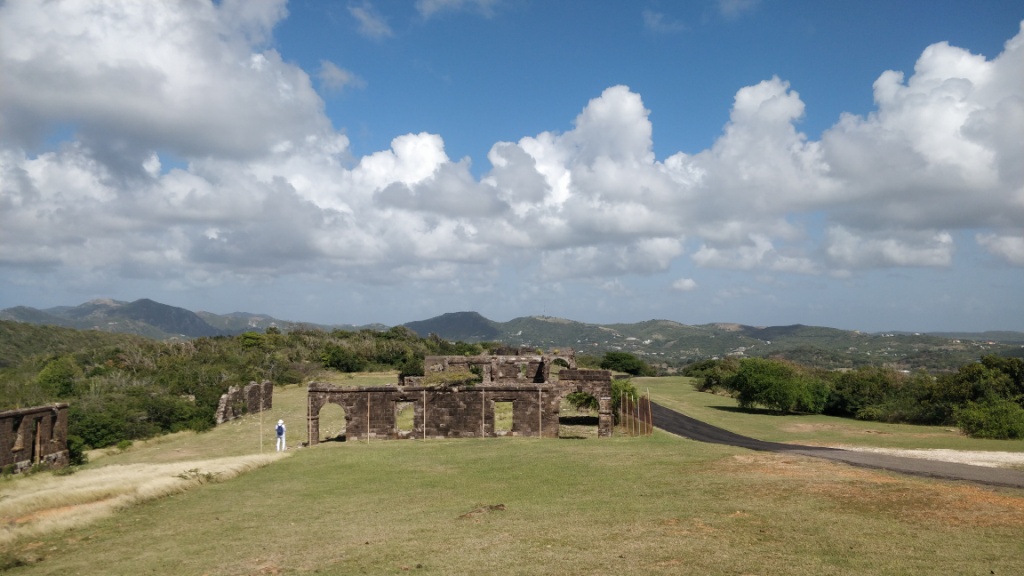 Früh morgens docken wir am Cruise Terminal von St. John’s in Antigua an. Wir frühstücken im Atlantik und machen uns so gegen 9 zum Treffpunkt in die Schau Bar. Heute haben wir wieder einen Halbtages-Ausflug mit TUI Cruises gebucht „Landschaftsfahrt mit Ein- und Ausblicken“. Vom Hafen aus geht es mit dem Bus nach Süden erst zu einer Festung „The Blockhouse“, dann zum Aussichtspunkt Shirley Heights. Eine traumhafte Bilderbuchaussicht zeigt sich uns.