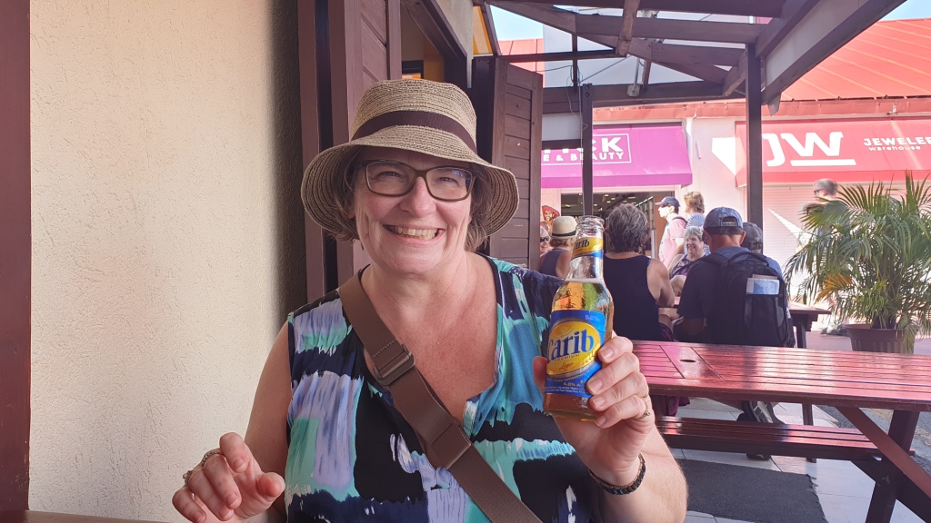 Am Nachmittag machen wir einen kurzen Bummel durch das Pier. Es ist sehr heiss und wir haben keine Lust zu weit zu laufen. Schwimmen wäre schön, aber dafür reicht die Zeit nicht mehr. Also sehen wir uns die kleinen Läden am Pier an und trinken in einer Bar ein Carib Bier.