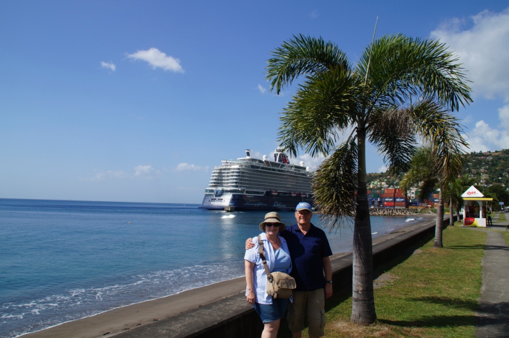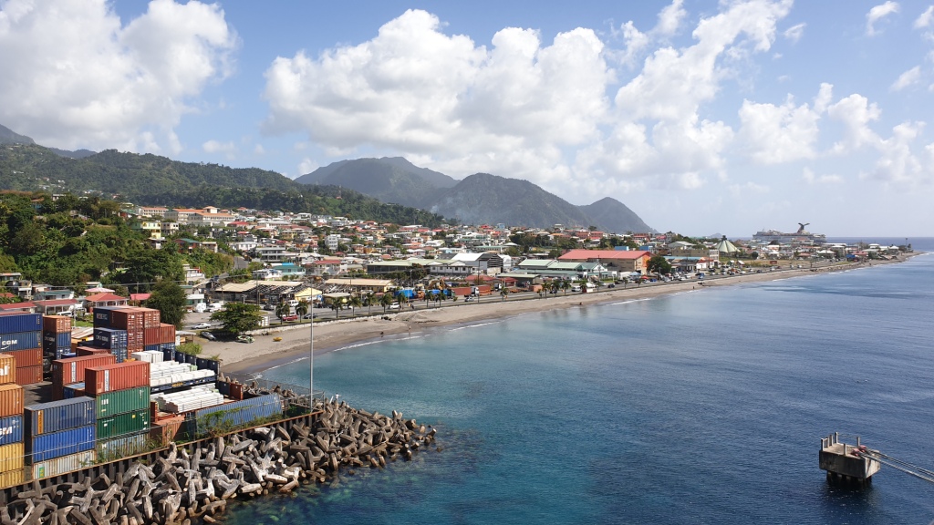 Nach einem kleinen Mittagessen, entschliessen wir uns die 2 km in die Stadt Roseau zu laufen. Es fällt auf, dass noch einige Häuser vom Hurrikan zerstört sind. In der Stadt besuchen wir das Rock Ruins Café, in dem wir schon 2013 waren. Ein amerikanisches Kreuzfahrtschiff liegt im Haupthafen und deshalb ist der Laden ziemlich voll. Wir genehmigen uns ein Getränk und laufen dann wieder durch die Gassen von Roseau zurück zum Schiff.