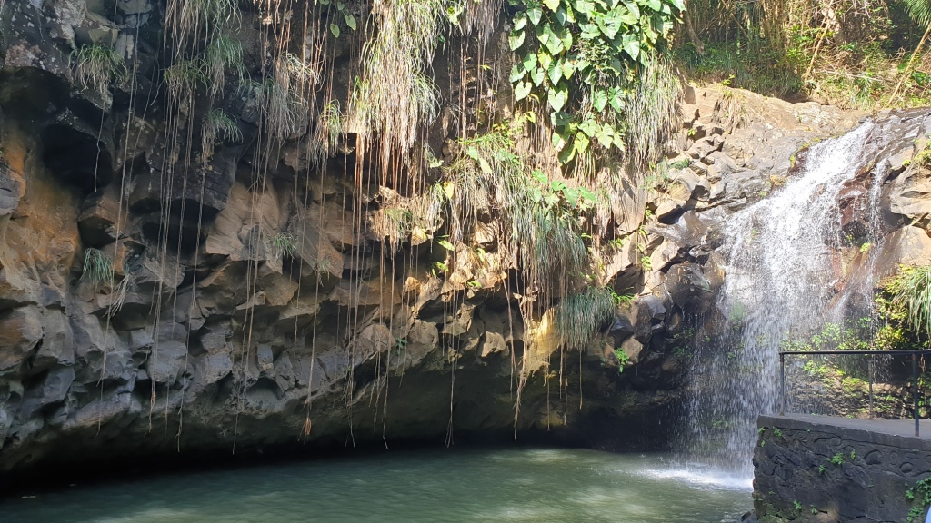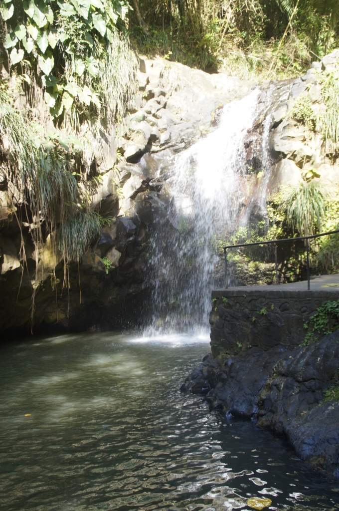 Wir fahren zuerst durch die grüne und hügelige Landschaft Grenadas zum Anandale Wasserfall. Dieser ist sehr touristisch und dementsprechend voll. Man läuft ein kurzes Stück Weg hinunter zum Wasserfall, wo Einheimische gegen Geld anbieten vom Felsen hinunter zu springen. Der Wasserfall ist etwa 10 m hoch, nichts Spektakuläres, wenn man aus der Schweiz kommt, ausser vielleicht die Vegetation rundherum. Am Weg wird einem versucht irgend ein Souvenir anzudrehen und Fotos sind schwierig zu machen, da immer irgend ein anderer Touris vor einem steht.