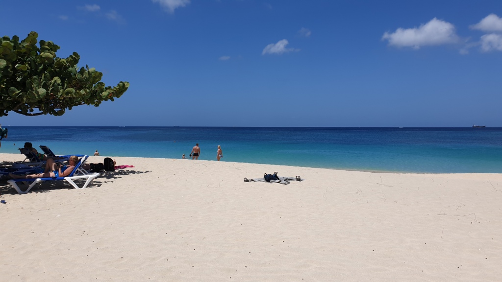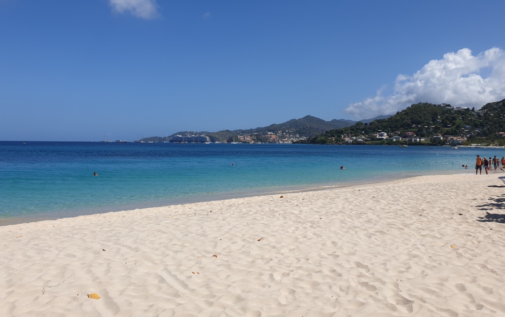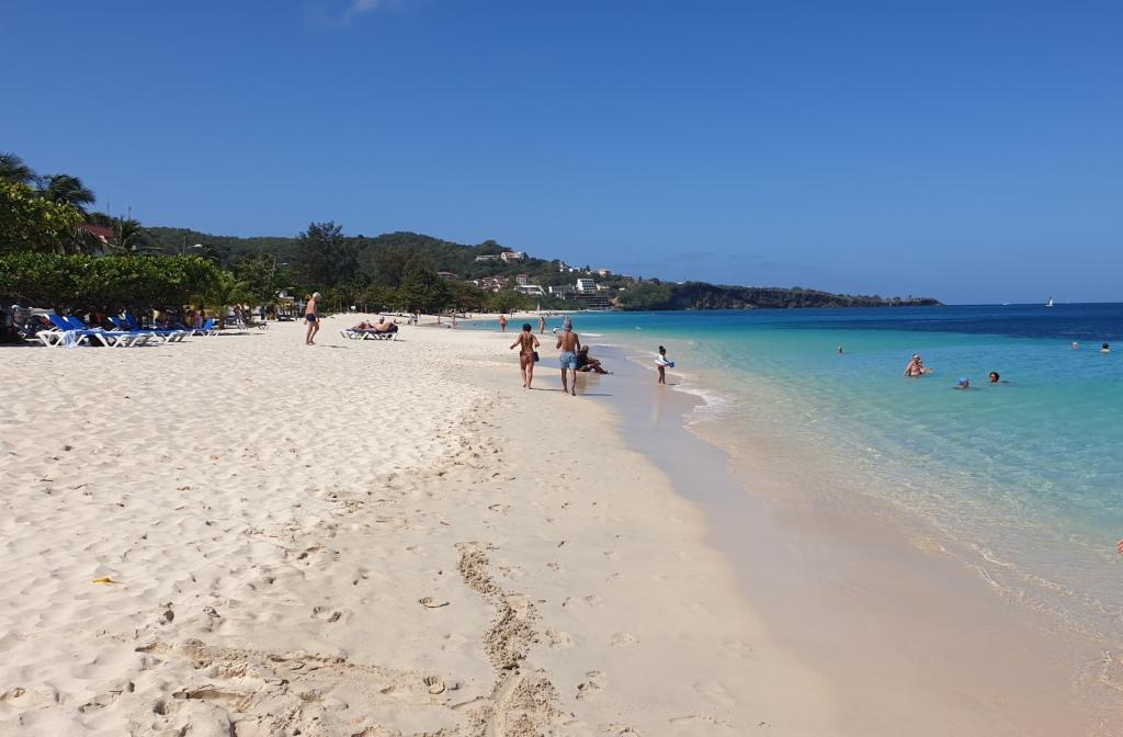 Nach einem kurzen Halt und vielen Fotos werden wir zum Grand Anse Beach gebracht. Hier haben wir in einer Hotelanlage am Strand ein paar Liegestühle zur Verfügung, können im Hotel die Toiletten benutzen und sogar ein Getränk holen. Der Strand und das Meer sind traumhaft. So richtiges Karibikfeeling kommt auf. Hier hätten wir es noch länger ausgehalten als 2 Stunden.