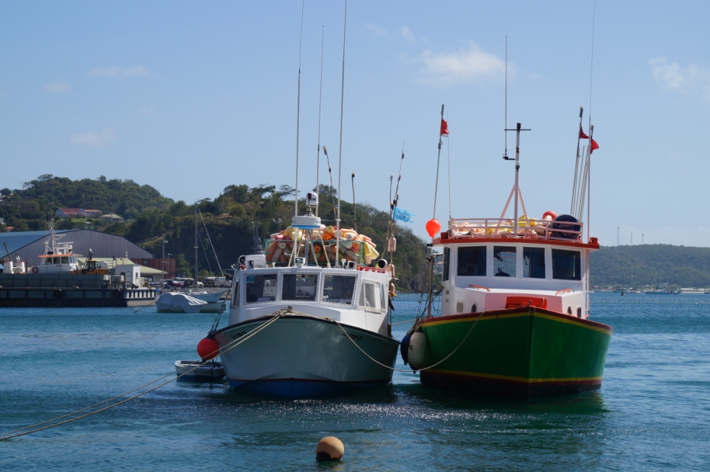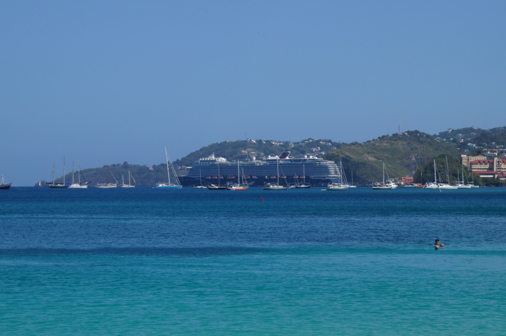 Nach dem schönen Badevergnügen werden wir wieder abgeholt und zurück zum Schiff gebracht. Wir duschen, machen uns frisch und gehen dann in den Fischmarkt auf der Mein Schiff 2 Mittagessen. Danach brechen wir zu einem Rundgang durch St. George’s auf. Wir laufen durch den schmalen Sendall Tunnel, durch den auch Autos fahren und kommen so zur Carenage. Ein hübscher kleiner Hafen mit vielen kleineren Booten.