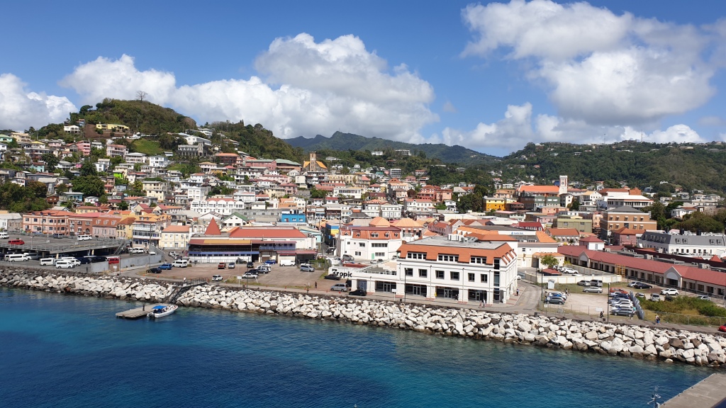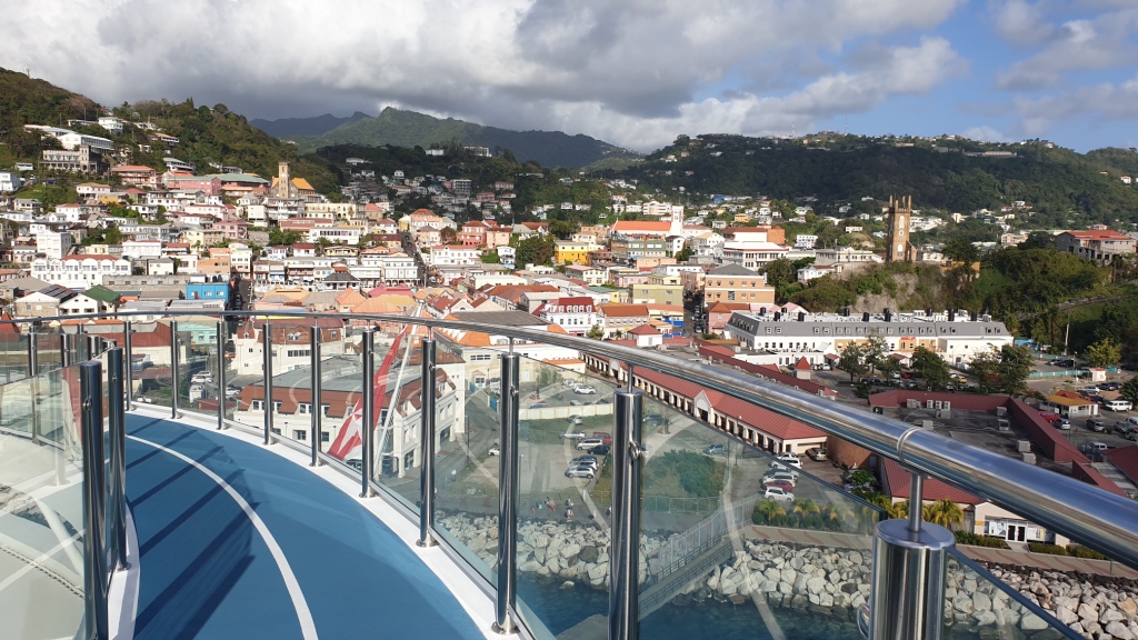 Zurück an Bord geniessen wir die Aussicht auf St. George’s von der Jogging-Bahn aus.