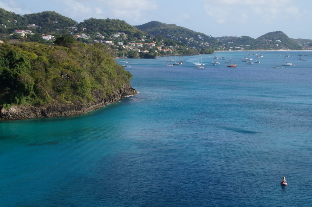 Heute müssen wir noch früher aufstehen. Um 08:00 Uhr müssen wir schon am Treffpunkt sein für den über TUI Cruises gebuchten Ausflug „Wasserfall, Festung und Grand Anse Beach“. So begeben wir uns heute in die Backstube des Anckelmannsplatz zum Frühstück. Wir werden danach beim Ausgang des Hafens von einem crazy Typen abgeholt der uns in einen kleineren Bus verfrachtet und unheimlich gut drauf ist. Weiss Gott was der zum Frühstück schon intus hatte.