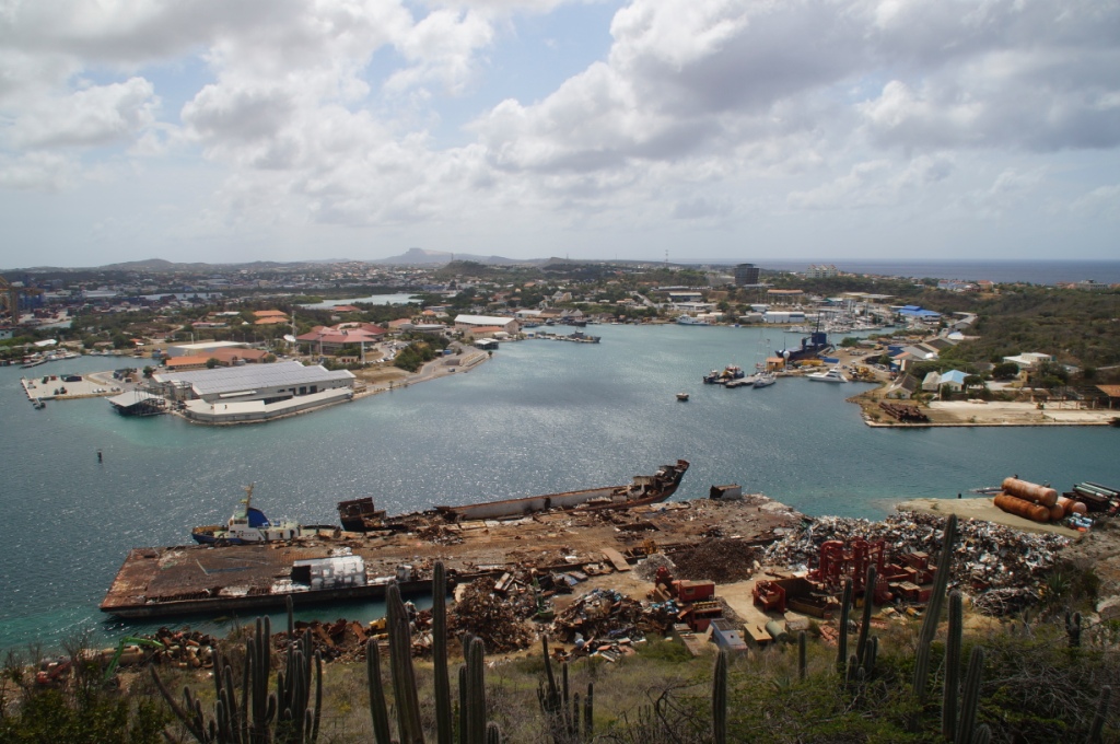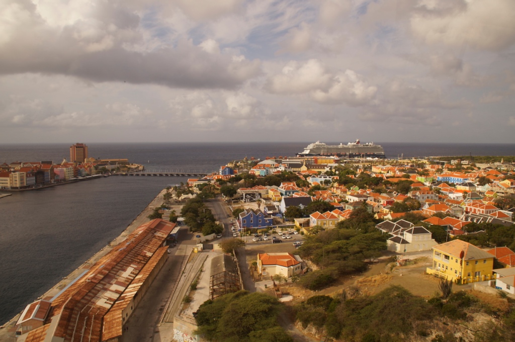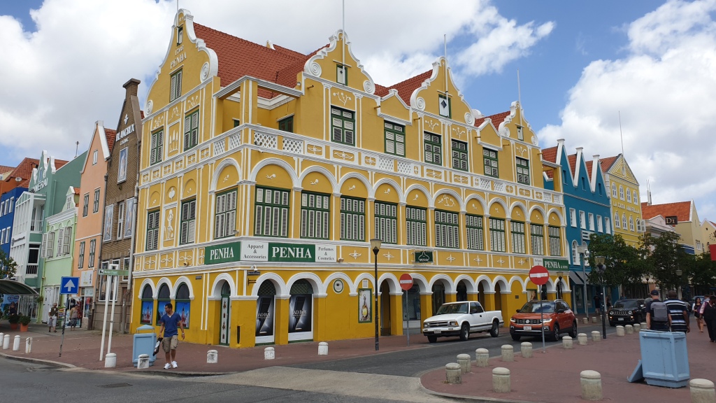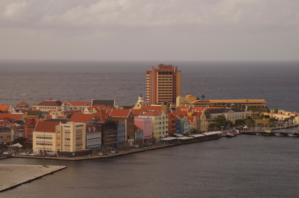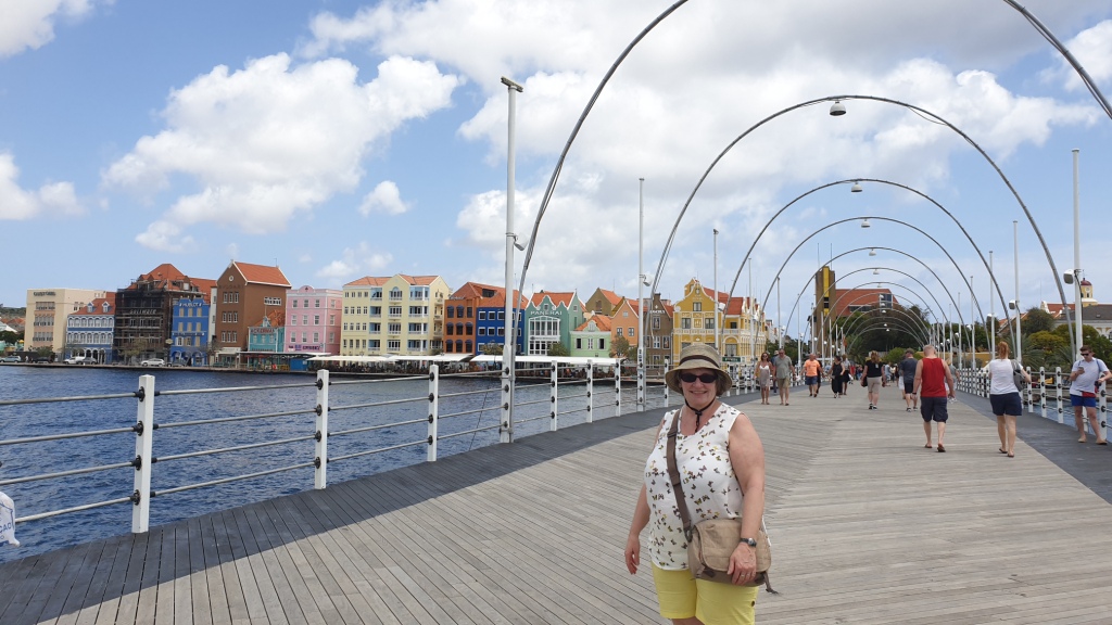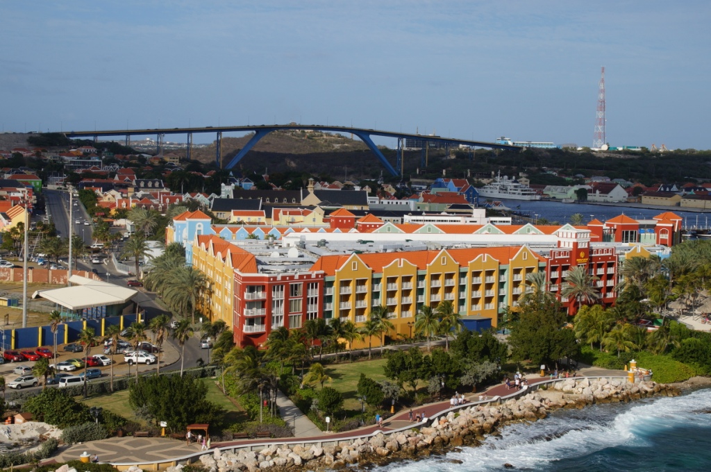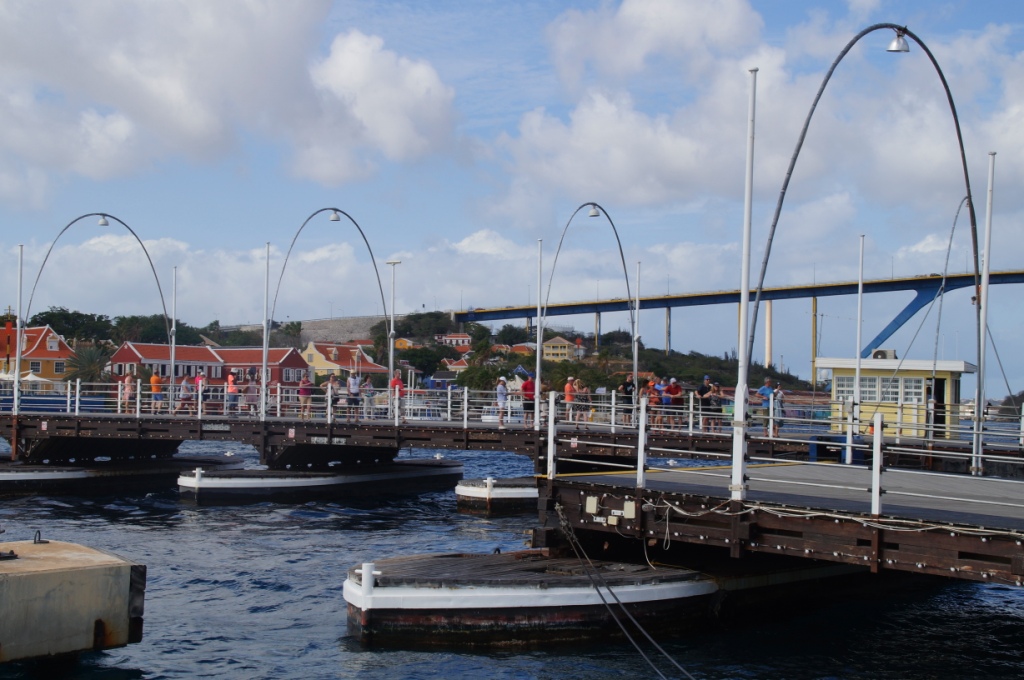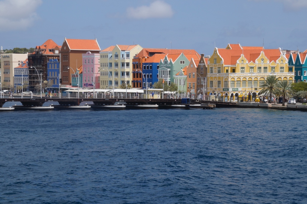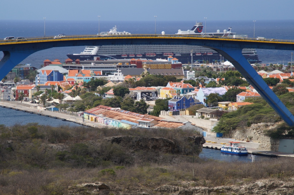 Willemstad gefällt uns sehr gut durch die schönen bunten Häuser und vielen Cafés und Geschäfte. Wir schlendern durch den Stadtteil, trinken etwas in einem Gartenrestaurant. Wir beobachten wie die Königin Emmabrücke geöffnet wird, um ein Schiff durchzulassen und laufen dann wieder zurück zu unserem Schiff, das am Kreuzfahrtterminal in Otrabanda angelegt hat.