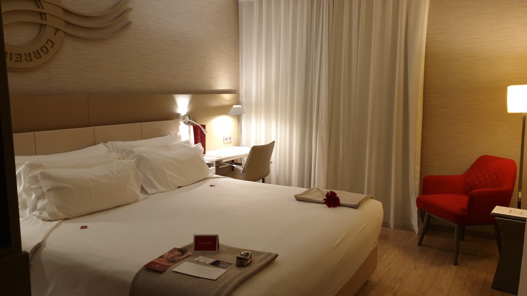 Wir haben für die 4 Nächte das NH Hotel Collection Porto Batalha gebucht und können sofort einchecken, das Gepäck in das Zimmer stellen und dann losgehen ein Restaurant zu suchen. Das Hotel ist neu renoviert, das Gebäude war früher ein Palast einer reichen Familie, später dann ein Regierungsgebäude. Die Zimmer sind schön eingerichtet und verfügen über alles, was man so braucht.