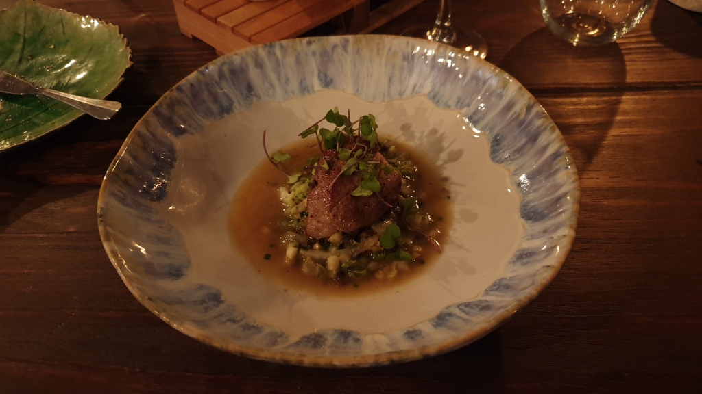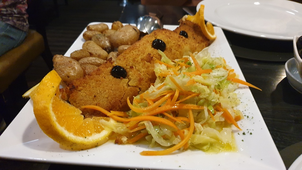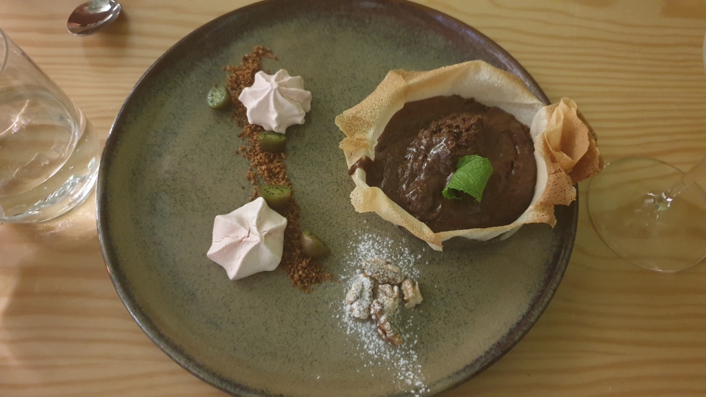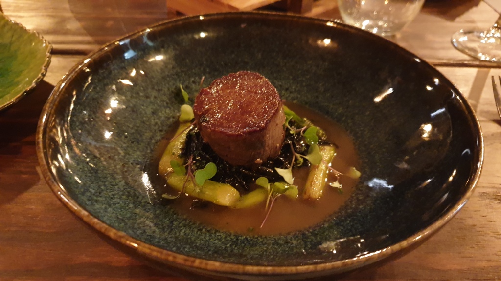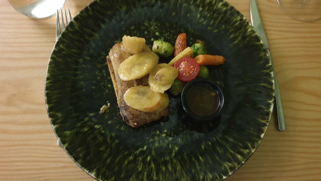 Da wir recht hungrig sind und im Vorfeld schon ein bisschen recherchiert haben, wo in der Nähe ein gutes Restaurant zu finden ist, begeben wir uns gleich hinter dem Hotel zum Restaurant elébê Entreparedes. Es ist schon 21:00 Uhr, wir sind gespannt ob es noch Platz hat für uns. Wir müssen einen Moment im Vorraum warten, dann werden wir in den 1. Stock geführt und können dort in einem schönen grossen Saal, der aussieht wie ein Garten, ein leckeres Mahl zu uns nehmen.