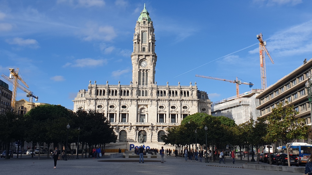 Wir spazieren zum Torre Clérigos, zur Livraria Lello, dort steht eine lange Schlange von Touristen, um sich einen Zugang zur Bücherei mit der geschwungenen Treppe, zu verschaffen. Dazu haben wir definitiv keine Lust. Wir sind dann beim Rathaus vorbeigelaufen, dort standen auch Massen um ein Foto mit den PORTO Buchstaben zu machen.