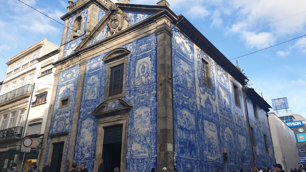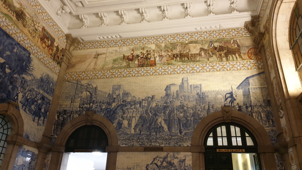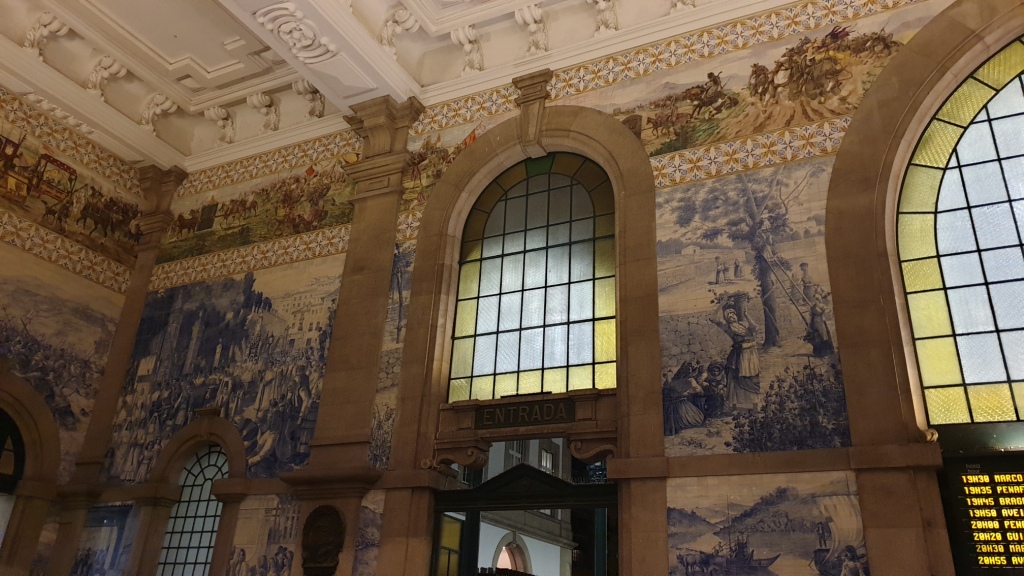Auf dem Weg zum Restaurant kommen wir noch beim Bahnhof Sao Bento vorbei mit der schönen Innenhalle. Wir können sie gar nicht richtig fotografieren, sieht aber wirklich sehr schön aus mit den vielen Azulejos.