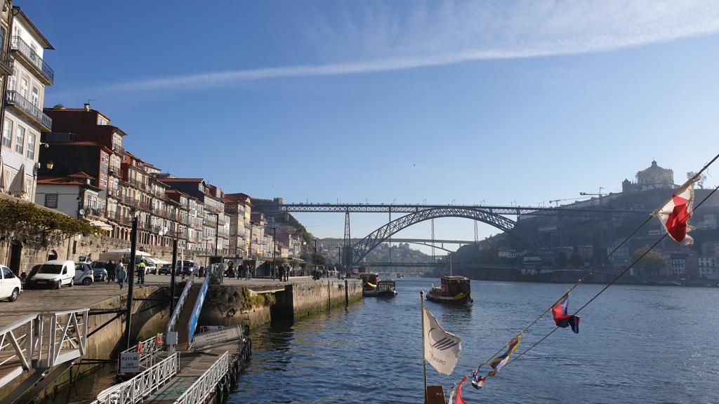 Das Wetter ist heute sensationell, so laufen wir nach der Schiffahrt durch die engen Gassen hinter dem Ribeira dann über den Ponte Dom Luis nach Gaia hinüber. Dort genehmigen wir uns eines dieser leckeren Pasteis de Nata und geniessen die Aussicht auf den Fluss.