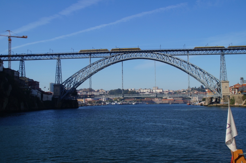 Am nächsten Morgen nach dem Frühstück laufen wir die vielen Treppen hinunter nach Ribeira. Heute morgen wollen wir zu allererst die Schiffahrt auf dem Douro machen. Wir haben Glück und es stehen noch nicht viele Leute an. Das Schiff fährt zuerst unter dem Ponte Luis durch und weiter bis nach der Eisenbahnbrücke, die fast gleich aussieht wie der Ponte Luis und dann zurück bis zur Autobahnbrücke. Vom Schiff aus hat man eine tolle Aussicht auf die beiden Stadtteile Porto und Gaia.
