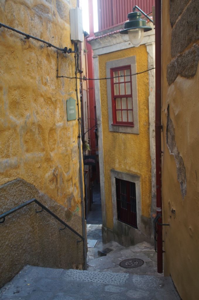 Am Abend laufen wir einen anderen Treppenweg hinunter zum Hafen, über die Brücke nach Gaia und essen dort im Rabelos einen Bacalhau (Stockfisch). Das Restaurant ist sehr schön gelegen, die Bedienung freundlich. Das Essen, na ja, ich habe zwar gerne Fisch aber der ist mir dann doch zu trocken. Nicht unbedingt mein Geschmack. Es hätte bessere Sachen auf der Karte. Wir spazieren wieder zurück nach Ribeira und schlendern dort am Hafen entlang. Hier gibt es sehr viele Restauants und Bars und entsprechend viele Leute sind unterwegs. Wir genehmigen uns auf einer kleinen Terasse im oberen Stock noch ein Gläschen Wein und lassen den Tag ausklingen. Zurück zum Hotel fahren wir mit der Funiculare Guindais.
