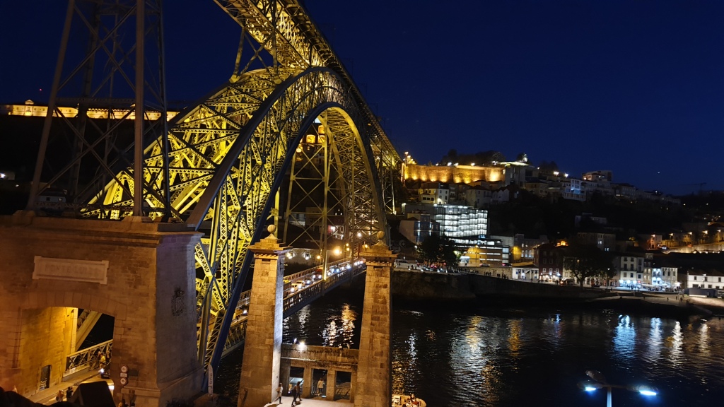 Nach dem feinen Essen laufen wir noch am Porto de Ribeira entlang und beobachten das nächtliche Treiben. Wir nehmen die Funiculare hinauf nach Batalha und begeben uns ins Hotel.