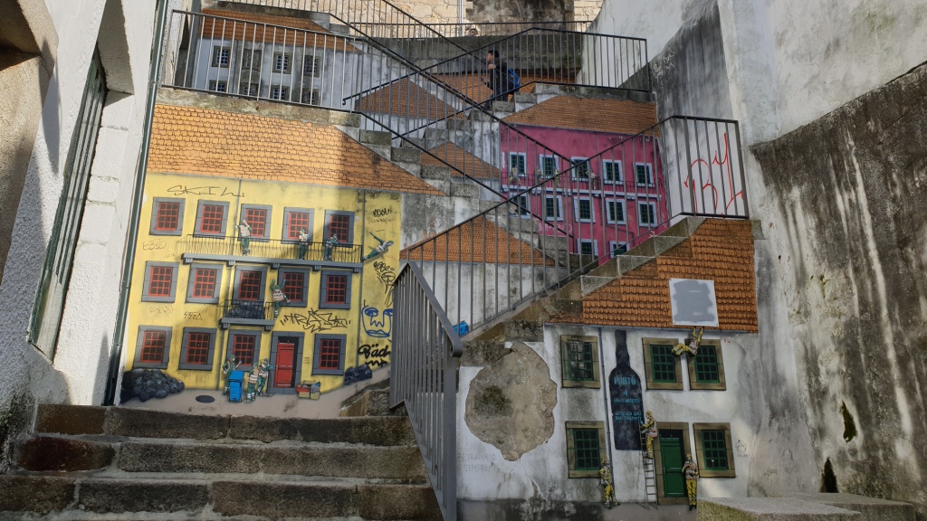 Mit der Strassenbahn fahren wir über die Brücke Dom Luis zum Jardim de Morro. Von hier laufen wir dann hinunter nach Gaia, kommen an vielen Murals vorbei und gestatten dem Offley Portweinkeller noch einen kurzen Besuch ab.
